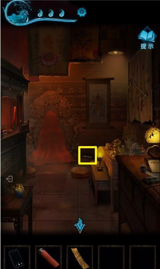 31、返回“六宝阁”,点击左边的神龛,在碗中点燃【纸扎寺庙】,香炉中插上六炷香并点燃,左右两边都贴上【符纸】,剧情过后,第二章结束。