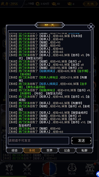 玩家点击下方系统发送的消息,即可进入聊天界面,可以进行世界聊天、公会聊天、私聊,但是需要人物满二十几级。