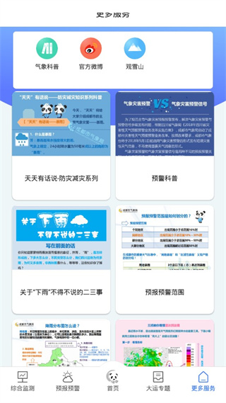 6、最后在更多服务当中,还可以看到预警科普和各种知识;