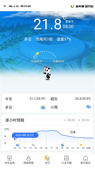 提供成都地区逐6小时天气预报、区县级7天天气预报、五城区24小时天气预报、乡镇级24小时天气预报、短时临近天气预报;