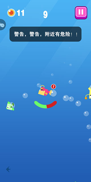 2、如果附近将有大鱼出现,会弹出危险的警告信息。