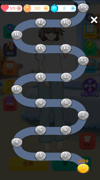 5、支持对你的角色精心装扮,如果金币不够,还可以去挑战关卡获得金币、钻石等。