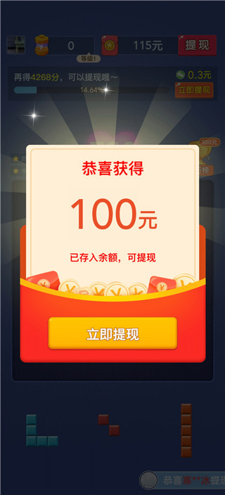 3、随着消除越多得分越高,所能提现的钱就越多