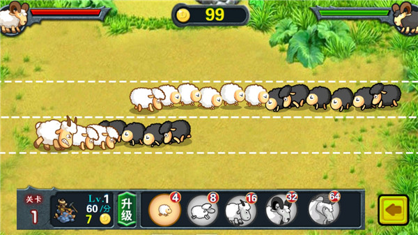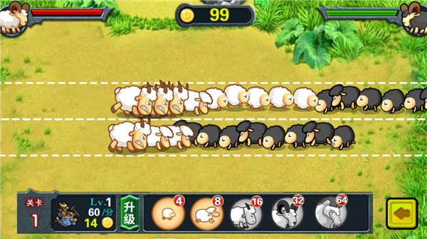 4、获得胜利可以获得金币来升级,升级将更轻松的招募更多山羊。