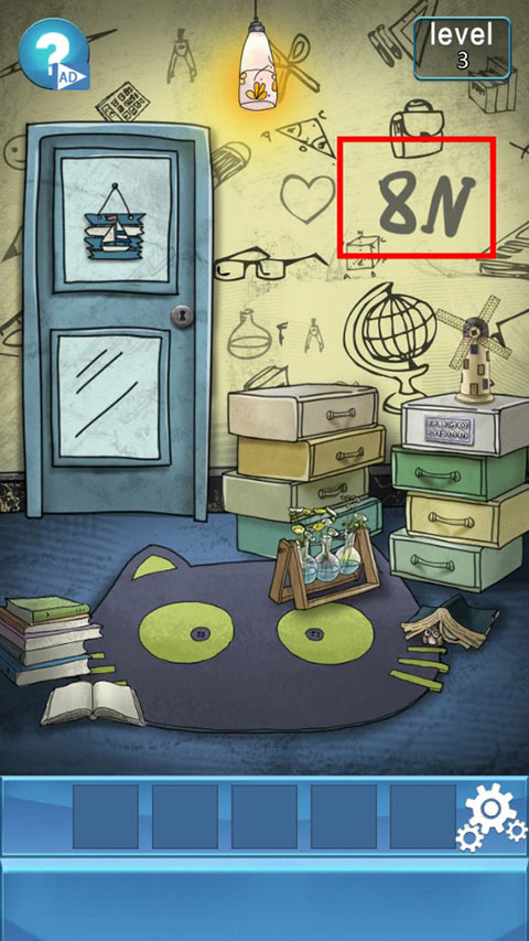 1、根据墙上的提示8N,得到密码EIGHTN,查看抽屉,输入密码,拿到钥匙开门。