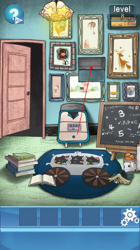 查看棋盘,根据墙上的提示,依次按下11、22、33、44、55的棋子,拿到钥匙开门。