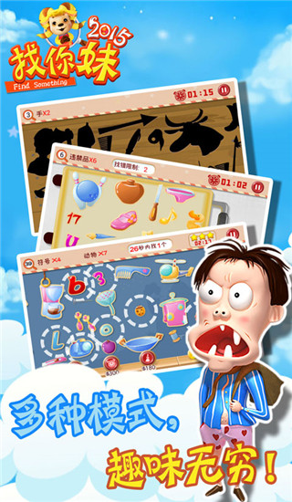 找你妹2015完整版是一款风靡全球的找图类游戏。该款游戏延续了找你妹系列的经典玩法,以“找物品”为核心主题,并融合了RPG游戏元素。游戏中玩家需要在寻找妹妹的过程中,展开一系列的冒险,玩家可以使用上百种趣味道具,如“原子弹”,“庆丰包子”,“蓝屏按钮”等等,无数精心雕琢的细节和游戏难度、玩法的转换,给予玩家持续不断惊喜感和新鲜感,使玩家乐在其中。此外,游戏还新增了奖励模式、安检模式、数字模式、轮廓模式4种游戏模式,以更加自由便捷操作、精美清新的画风和诙谐动人的故事情节,将风靡全球大找茬风暴再次点燃。喜欢的朋友快来下载体验吧!