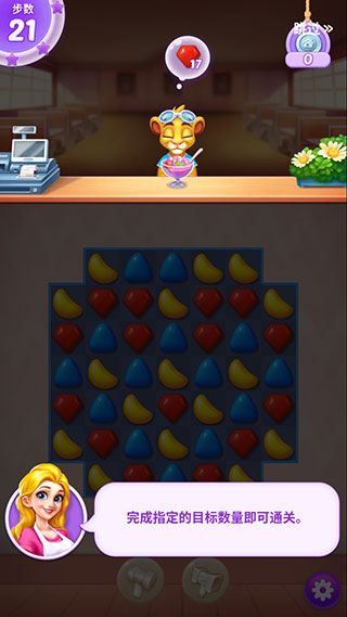 4、左上角显示的是本关剩余的步数,在步数内完成指定的目标数量即可通关。