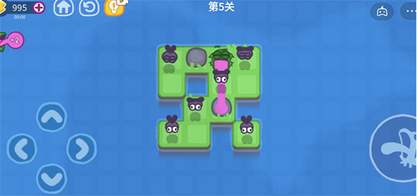 2、我们先来到左上角,然后利用石头延伸自己的舌头+1。