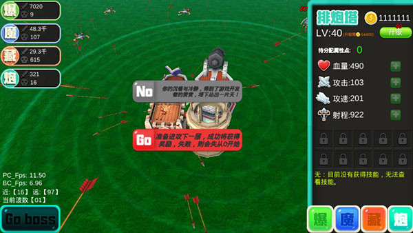 炮塔:这个塔的炮弹可以打出远距离小范围伤害(魔,藏都是单体,爆射程又小) 但是我觉得各成长性都比较低 加强一下也可以的,加点的话均衡点就行