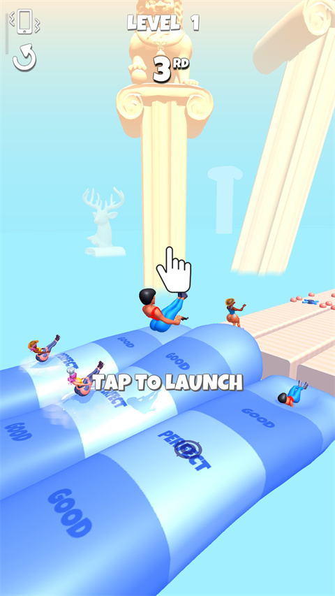 游戏设计了很多有趣的陷阱和障碍,比如“垫子”能保护屁股不被扣掉。收集越多,屁股越大,最后一关还能展示成果。新增的平衡板和弹跳岛机制让闯关更有趣味性和挑战性。新手指南详细介绍了如何开始游戏、躲避对手以及解锁新角色。