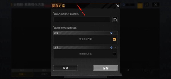 在红色箭头指向的输入栏中输入或者粘贴自己保存下来的代码保存使用即可,同时最多可以保存两套方案,这样也大大的减少了萌新玩家和一些纠结自己加点会不会出问题的玩家,直接保存的代码就可以直接使用在自己的舰船上这边要注意是(使用新的加点方案仍然是首次更换免费。第二次开始就要收取电子货币来更换新的加点方案)