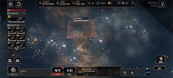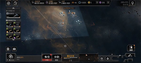 我们可以先将偷矿舰队调动到13计划处,不会引起警告,等待舰队到位后,为了节省策略,直接将计划扩展到我们要攻击的建筑处,发起行动!如图 (舰队为演示作用)。