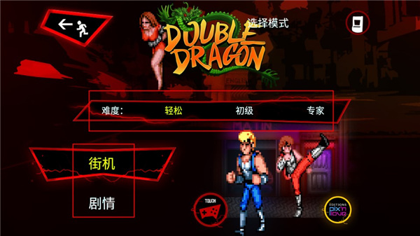 游戏拥有经典怀旧风格的复古像素画面,融合了玩家最喜欢的拳击、踢脚、推肘、撞膝、撞头和各种格斗方式,同时为玩家提供街机和故事两种游戏模式随你挑战,难度也各不相同,三个版本的双截龙玩家可以随意挑战,玩家还可以选择双人模式,随机匹配不同的对手进行对战,掌握角色的进攻节奏说不定可以轻松取得游戏的胜利哦,同时游戏还支持手柄体验,玩家可以把手柄和手机连接在一起玩,选择不同难度,挑战不同的关卡。