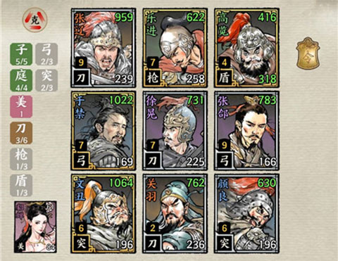 推荐理由:感觉真的是神挡杀神,佛挡杀佛。第一回合先用召集令拉出来辽哥,然后再买个高览或乐进,没刷出来就不买,反正一个辽哥可以砍过去。前期不刷新,随缘买高览和乐进,只买四庭柱和五子良将,钱够了就升级坑位。第二个召集令看情况,我一般选择关二爷。后面就简单了,攒钱,升坑位,攒钱,用东风免费刷新买武将。可以说,别的武将都是凑数的……