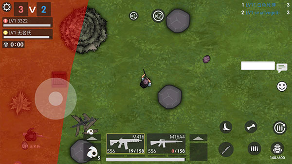 1、整个地图中玩家可以随意行动自由捡枪,只有快速抢答起来才能生存下去。