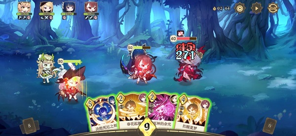 在纯白和弦游戏的每场战斗中,指挥可以上阵4名乐姬,每个乐姬拥有3张独特技能卡牌,也就是总数12张。开始战斗时会先抓取其中4张,其余牌进入“牌库”。当打出的手牌进入弃牌堆后,系统会自动从牌库中抓取新的一张。