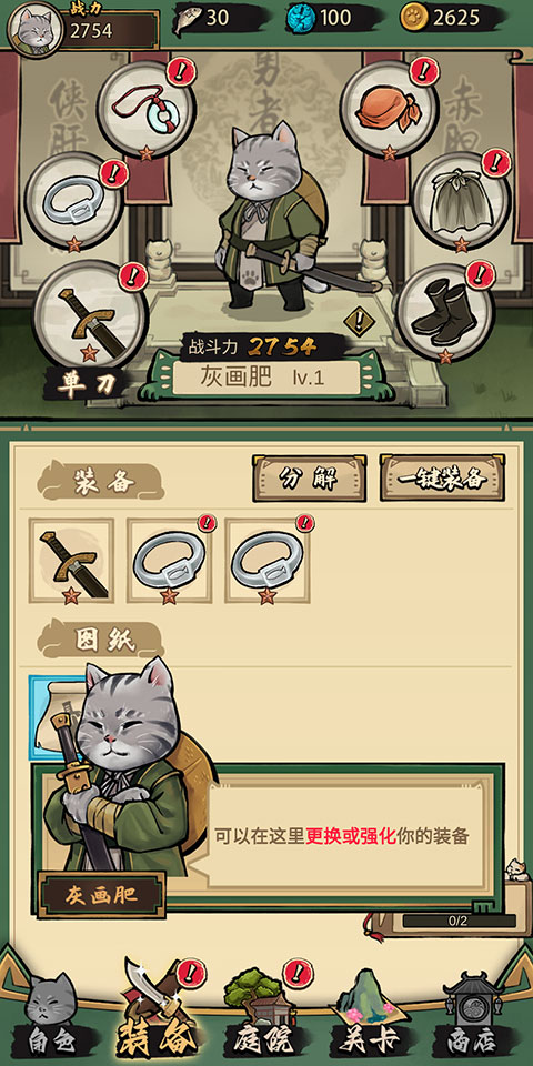 1、国风水墨肉鸽冒险游戏,控制猫咪灵活走位,完成各种任务挑战,解锁更多冒险。