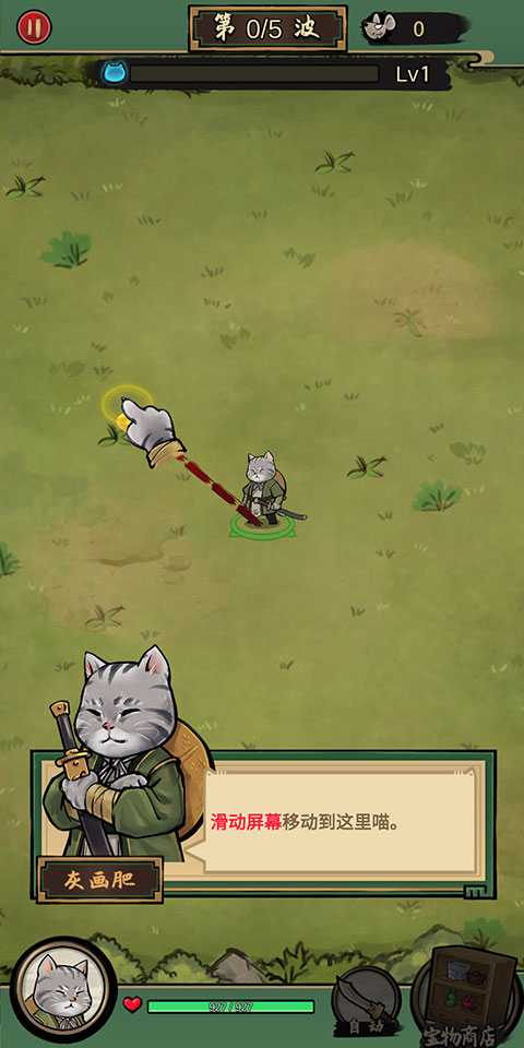 1、滑动屏幕来控制猫咪的移动。