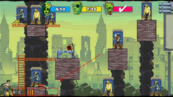 2、玩家可以通过多次尝试找到最合适的发射路径以及反弹路径,去消灭更多的僵尸,完成任务目标。
