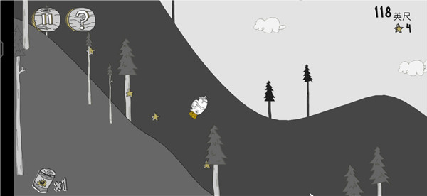3、骑上破烂的小车撞上树桩就可以滚下山崖收集星星了。