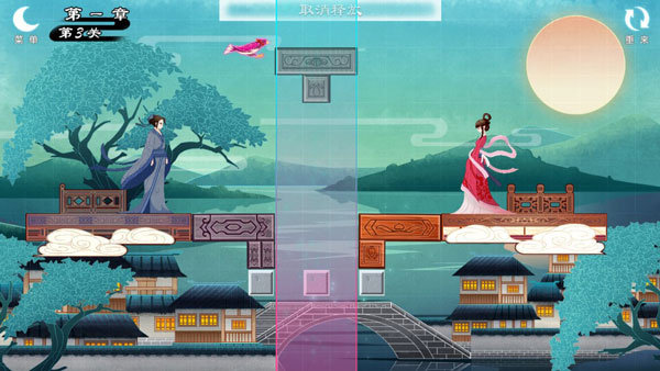 1、玩法拖动屏幕上方的俄罗斯方块,借助底下的各种机关,完成“鹊桥”的搭建,主要不要碰到不该碰的东西哦。