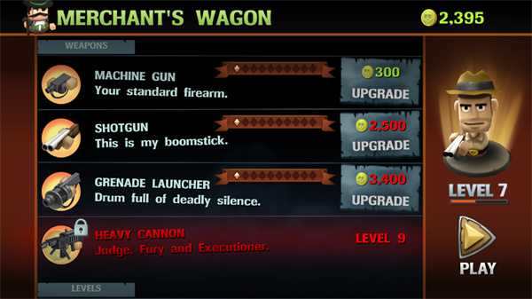 1、收集LOOT购买升级和项目在商家的WAGON;