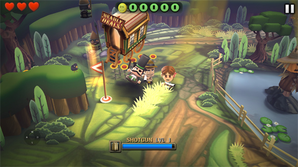 需要注意的是,攒金币解锁武器不会直接给,玩家只能在关卡中捡,所以你需要时刻注意脚下有什么武器可以武装自己。另外游戏在这之外也添加了些新元素,例如扣血后的会出现焦头烂额的凄惨样,如果有多余的武器箱,还可以拿来当作炸弹,直接秒杀一大片僵尸。