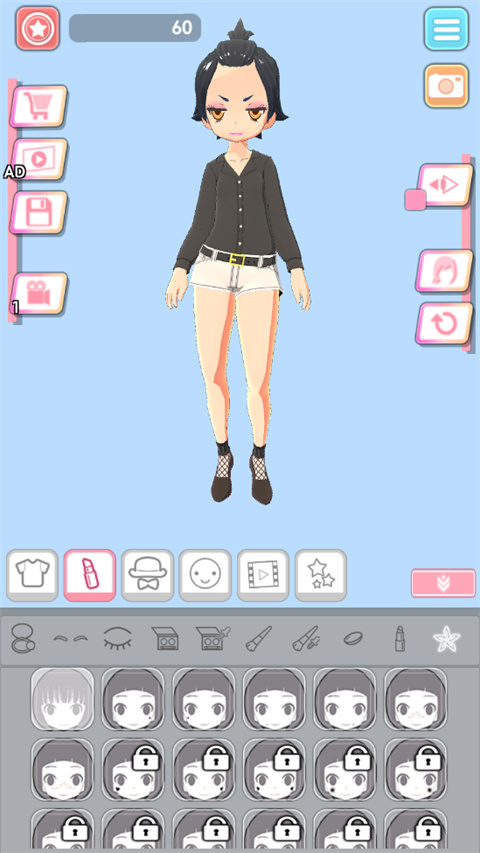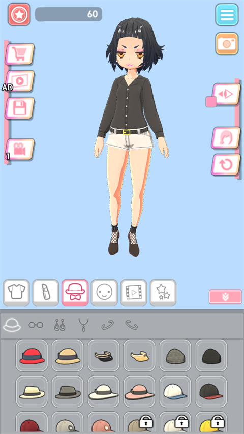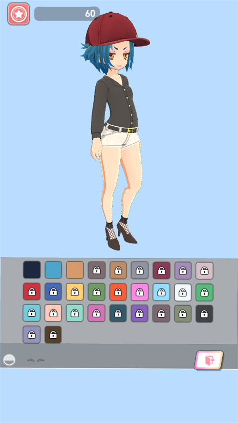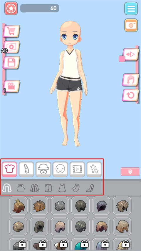 1、首先进入游戏,这里可以自由换装、换发色、发型、鞋子、帽子、皮肤颜色等;