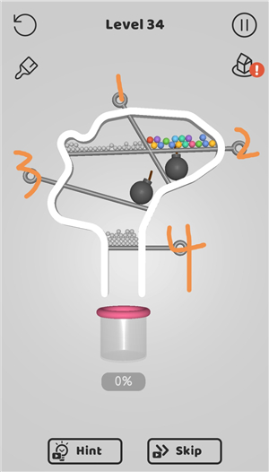 别针大师游戏是一款由Popcore GmbH游戏厂商打造的物理类益智休闲手游,游戏玩法十分简单易上手,动动手指即可完成所有操作。别针大师游戏需要运用一定的物理知识,将小球收集到一起,从上方往下掉落的小球,利用别针来避开各种道具,注意,不要在中途损失数量哦,当您安全抵达瓶口即底部时,恭喜您,您已成功通关。卡通画风、非常的小清新,新奇有趣的玩法,极度解压。除此之外。游戏画面采用清一色的卡通风展开,过程有着很多丰富性的特色关卡等你来闯关,看似简单的操作同时也会有些难度,因此你需要好好开动自己聪明的小脑瓜哦,感兴趣的朋友快来下载吧!