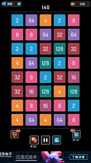《2248: Number Games 2048 Puzzle》采用益智类型游戏常见的合成玩法来诠释2048游戏模式。只需将三个或四个完全相同的数字连接起来即可合成更大的数字,连接的方式并不限于上下左右,就连对角线都可以达成目标。不断合成更大的数字就能完成任务,达成通关目标。当两种爆款玩法合二为一的时候《2248: Number Games 2048 Puzzle》就诞生了。