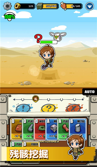 电波塔是一款有趣的卡通风格的冒险战斗手游。轻松的挂机放置类玩法,学习各种战斗技能,合理将技能与道具完美搭配,面对选择时做出合理的判断。游戏中玩家作为一名沙漠之中的探险者,需要不断去寻找那些电波塔来为自己提供补给,深入沙漠之中,你还可以在各个站台进行补给以及贸易往来,好让自己变得更强大。在游戏中玩家可以通过在沙漠中寻找电波信号来进行旅行,首先整理好各种不同的物资,然后选择不同的电波信号区域开启你的探险之旅,在旅行的途中沿途收集各种各样的资源和食物来保证自己的生存,同时也会遇到各种各样的敌人,击败它们还会掉落装备。对抗各种不同类型的敌人,熟悉他们的战斗技能即时应对,瞄准敌人的弱点进行攻击,有喜欢的玩家欢迎下载体验。