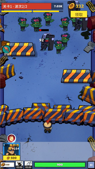 游戏中有丰富的枪械装备可以解锁升级,还有随机掉落的空投礼包提供奖励,帮助玩家更好地提升自己的战斗能力。作为放置类游戏,它不需要太多时间和精力,但每次击杀僵尸时的快感却非常直接,尤其是看到僵尸被击碎的感觉特别爽。虽然玩法简单,但策略性也不少,比如如何合理布置防御和选择武器,让整体体验挺丰富。