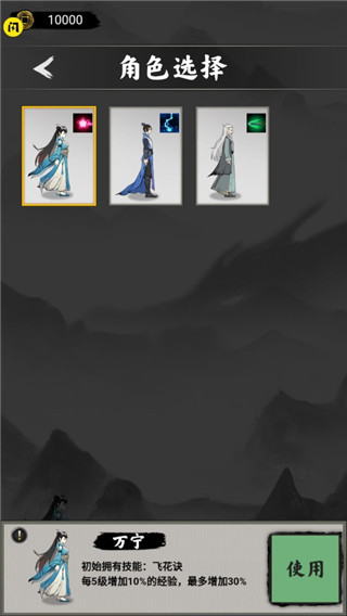 1、万宁初始技能:飞仙诀每升级5级提高10%的击杀经验,最多增加自己30%的闯关击杀经验