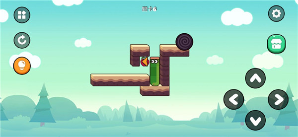 往前移动,然后往下转一圈。接着再往前,再向上。再往左边移动,吃掉苹果,再向右移动。往上移动,再往左边移动。然后就能出去了,爬到黑洞方向即可。