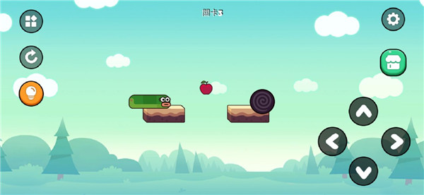 这一关先向右,头抵到边缘之后向上直到立起来,再向右吃到苹果,变长了就不会掉下去了,继续向右抵达终点;