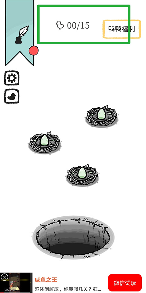 1、开局就是三个孵化鸟巢,其中有一个鸟巢有一个鸭蛋,玩家们点击这个鸭蛋