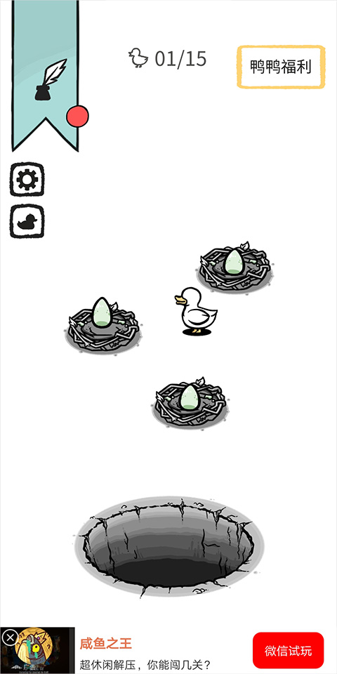 玩家只需在场景内稍等片刻,鸭子就会在窝内孵化出鸭蛋,通过点击鸭蛋孵化出更多变异种类的奇怪鸭子。
