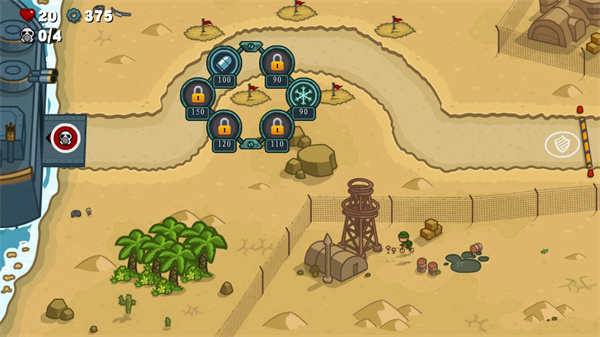 3、玩法很简单,在红旗上面开始放士兵,阻挡敌人经过;