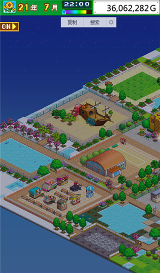 在前期一定要留很多可以挖沙子的地方,不然后期很难处理,因为五星的设备都非常大,尤其是游乐设备,一个超游乐区居然只放得下一个五星设备。