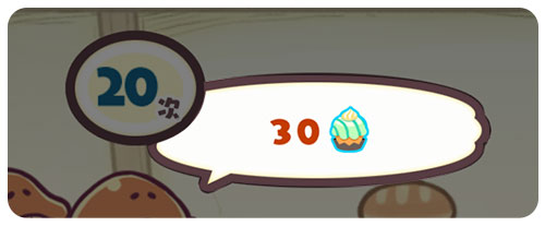 对话框左上方的数字是在顾客“菇菇”枯萎前的可操作次数。每消除一次方块,该数字就会减少1。数字一旦归零,顾客就会变成“枯哭菇菇”。“枯哭菇菇”好像几乎不会给予NP……请多加留意,尽量别让顾客枯萎吧!