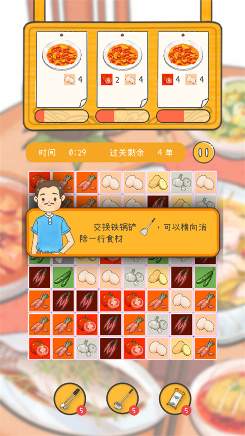 4、下面是消除区域,你需要根据订单的食材种类和数量来进行消除完成订单;