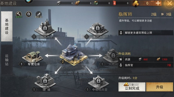 6、在指挥所中升级建筑来解锁各大科技和兵种。