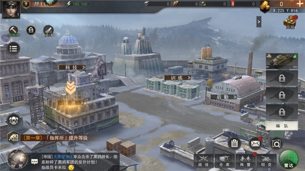 5、游戏分为科技、训练、后勤等多个板块,随着等级的提升解锁。