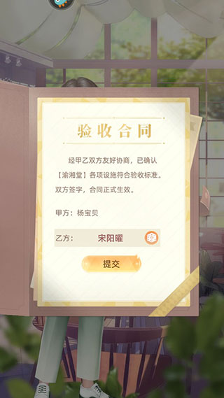 4、在成功征服甲方后,我们就可以开始签合同,大家可以为自己取一个响亮的名字,在乙方处填下,选择提交。