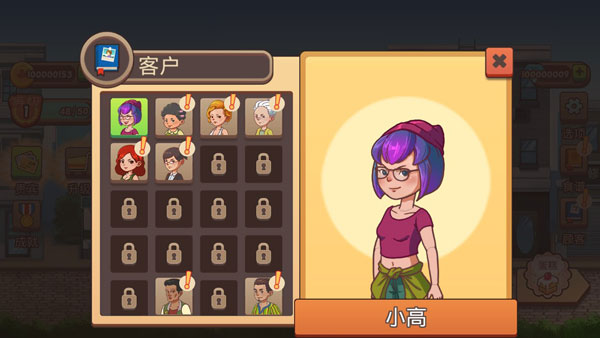 点击主界面的【顾客】按钮,即可查看已经解锁和待解锁的顾客。