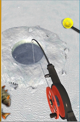 钻好钓洞之后,游戏会变成钓鱼视图,在其中进行垂钓。