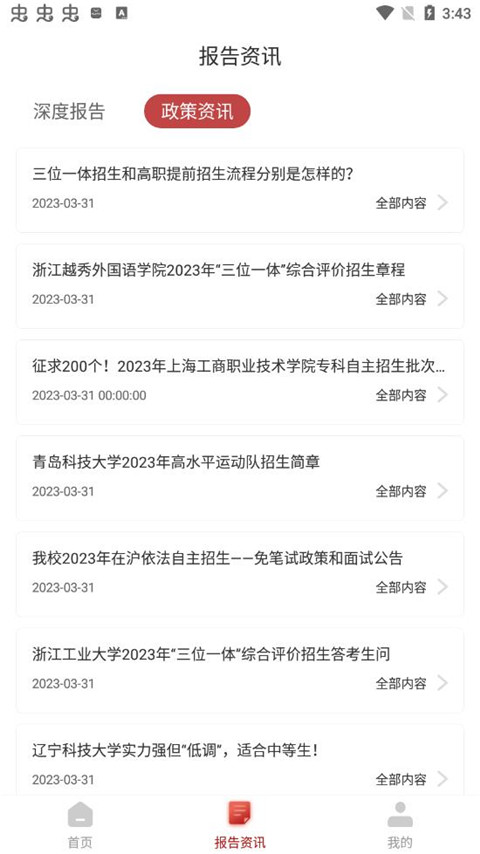 5、另外,软件更有每日最新报告资讯可供订阅,以便大家更好的了解学院信息及专业录取数据。