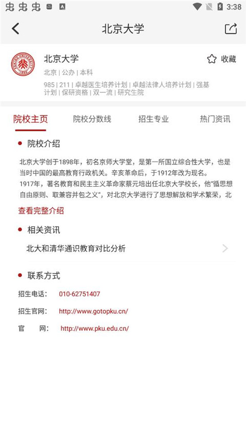 1. 打开企鹅高考志愿APP主页,搜索目标院校(例如:北京大学)。