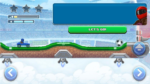 不仅如此,由于撞头赛车足球运动游戏最新版是撞头赛车的系列作品,所以它不仅继承了系列经典的像素风格,而且它还沿袭了它高清精致的3D游戏画面、炫酷靓丽的场景和丰富多样的玩法,加以振奋人心的背景音效,相信定能让你肾上腺素飙升,体验超爽的游戏乐趣所在!另外,除却多样的玩法以外,游戏的玩法也是十分的有意思,在游戏中玩家只需操控赛车,运用左右移动、跳跃等动作去击打足球,抢先进球并获得3分的玩家即可获得胜利,而在这个过程中你可以看到赛车在空中各种各样的状态哦。此外,撞头赛车足球运动游戏最值得一提的就是它提供了海量的关卡、各种不同的场景、多款独立的赛车造型以及赛车手速度、重量等系统,通过这些内容可让你尽情的感受更具魅力的赛车冲撞体验。感兴趣的你还在等什么呢,快快前来本站下载畅玩吧。